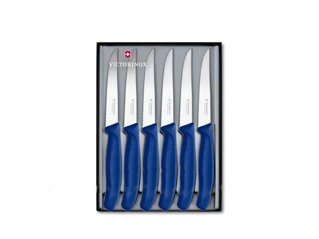 Victorinox 6.7232.6G súprava nožov na steak a pizzu, 11 cm, 6-dielna, zúbkovaná čepeľ, darčekové balenie, modrá