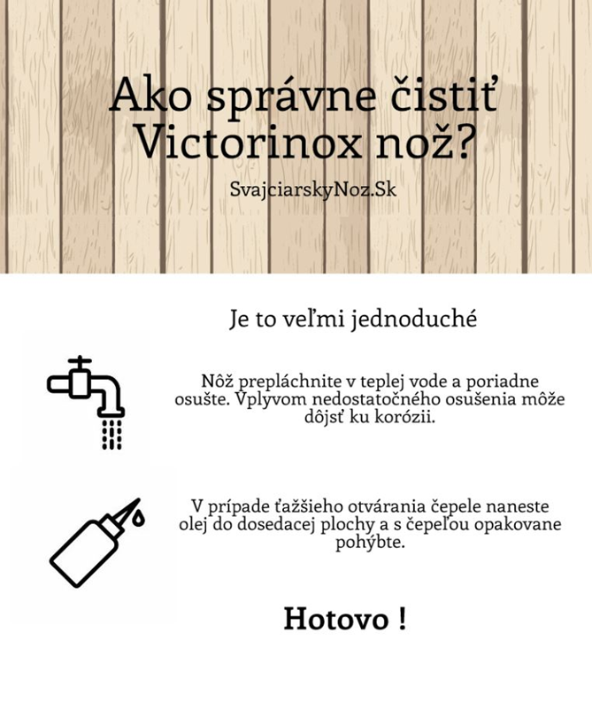 Ako vyčistiť nôž Čistenie noža je dôležité pre správnu funkčnosť noža. Používaním púzdra predchádzame znečisteniu počas nosenia.
