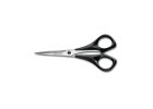 Univerzálne nožnice s čiernou plastovou rukoväťou, dĺžka čepele 16 cm.